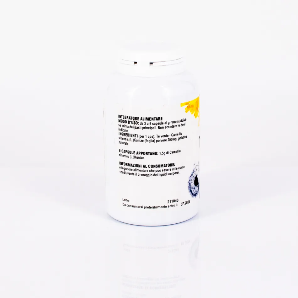 THE VERDE (per 1 cps): The verde - Camellia sinensis Kuntze (foglia) polvere 250mg, gelatina naturale.