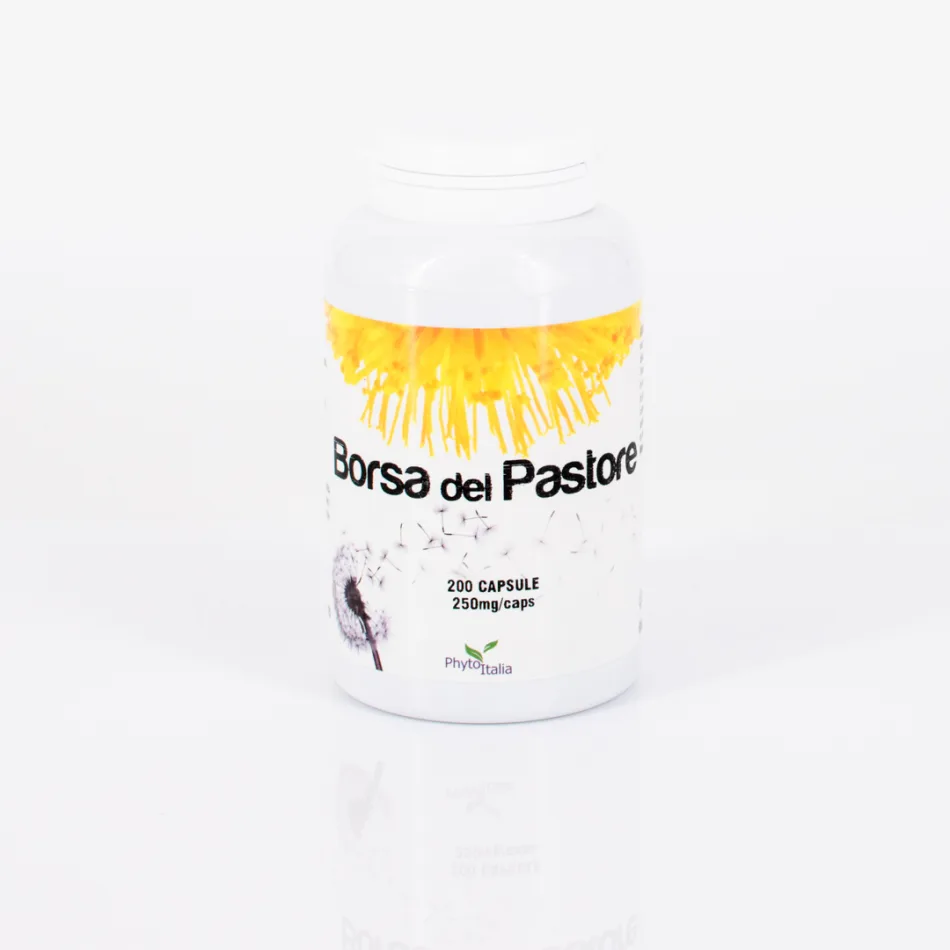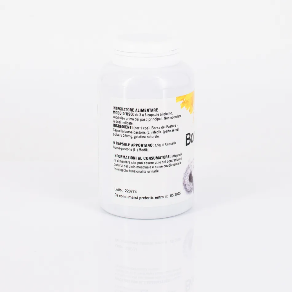 BORSA DEL PASTORE (per 1 cps): Borsa del Pastore - Capsella bursa-pastoris Medik. (erba) polvere 250mg, gelatina naturale. 6 CAPSULE APPORTANO: 1,5g di Capsella bursa-pastoris Medik.
