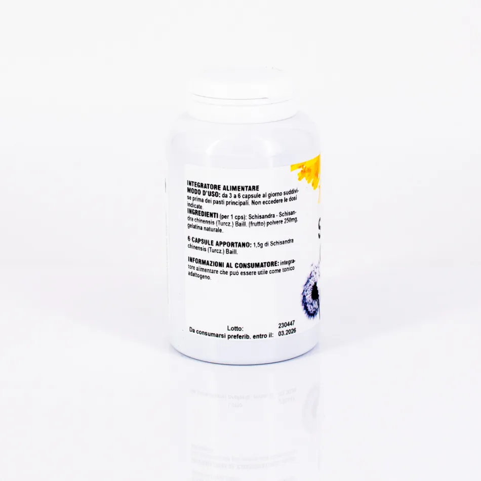 SCHISANDRA CHINENSIS (per 1 cps): Schisandra - Schisandra chinensis Baill. (frutto) polvere 250mg, gelatina naturale. 6 CAPSULE APPORTANO: 1,5g di Schisandra chinensis Baill.