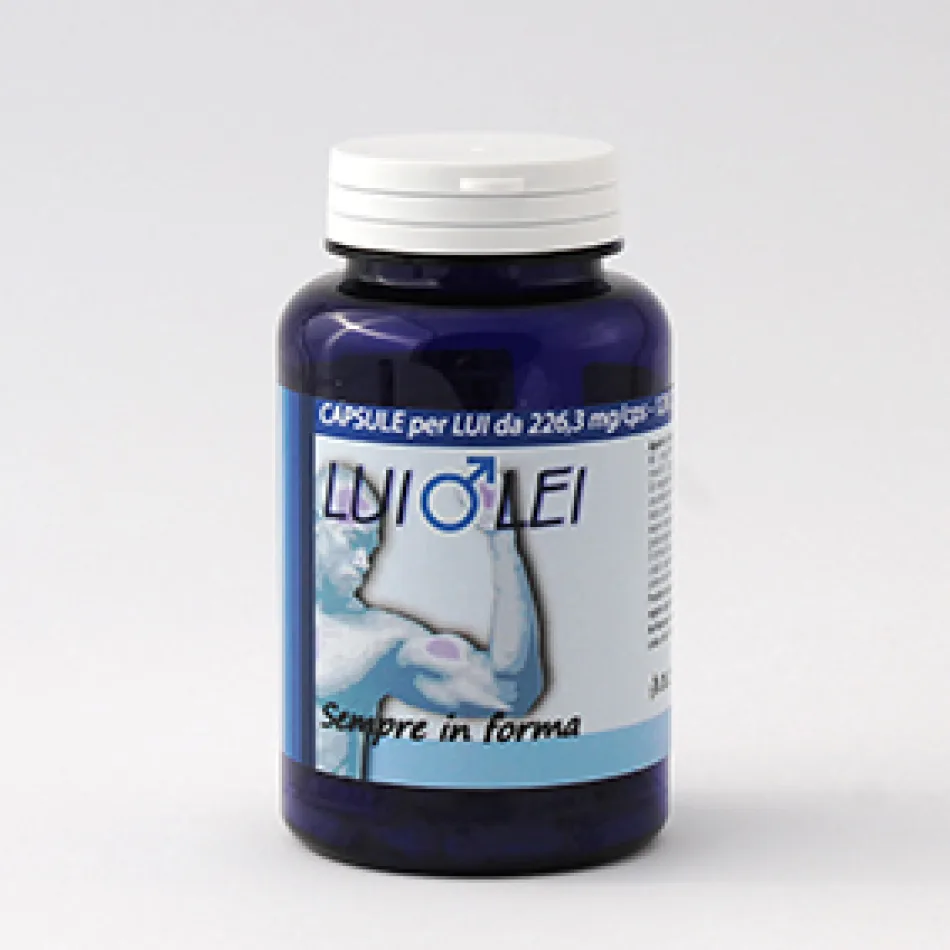 LUI capsule (per 1cps): Lagerstroemia - Lagerstroemia speciosa L. (foglie) polvere 100mg, Dioscorea - Dioscorea villosa L. (radice) estratto secco titolato al 20% in diosgenina 75mg, Ampalaya - Momordica charantia L. (frutto) estratto 4:1 25mg, Lagerstroemia - Lagerstroemia speciosa L. (foglie) estratto secco titolato all’1% in acido corosolico 25mg, Vit B6 - 0,75mg, Vit B1 - 0,52mg, Vit B12 - 0,75μg, gelatina naturale 4 CAPSULE APPORTANO: Vitamina B6 - 2,5 mg (179% VNR*), Diosgenina da Dioscorea villosa ( radice) 60mg, Acido corosolico da Lagerstroemia speciosa (foglie) e.s. 1mg, Vitamina B1 - 2,08mg (189% VNR*) Vitamina B12 - 3μg (120% VNR*) *Valori Nutrizionali di Riferimento.