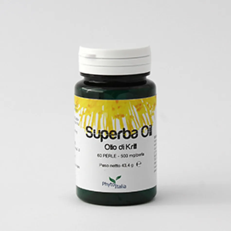SUPERBA OIL (per 1 cps): Olio di Krill (Euphasia superba) (crostacei) 500mg. Involucro: crostacei, gelatina, glicerina.1 PERLA APPORTA: 75mg di EPA e 40mg DHA. 3 CAPSULE APPORTANO: 225mg di EPA e 120mg di DHA.