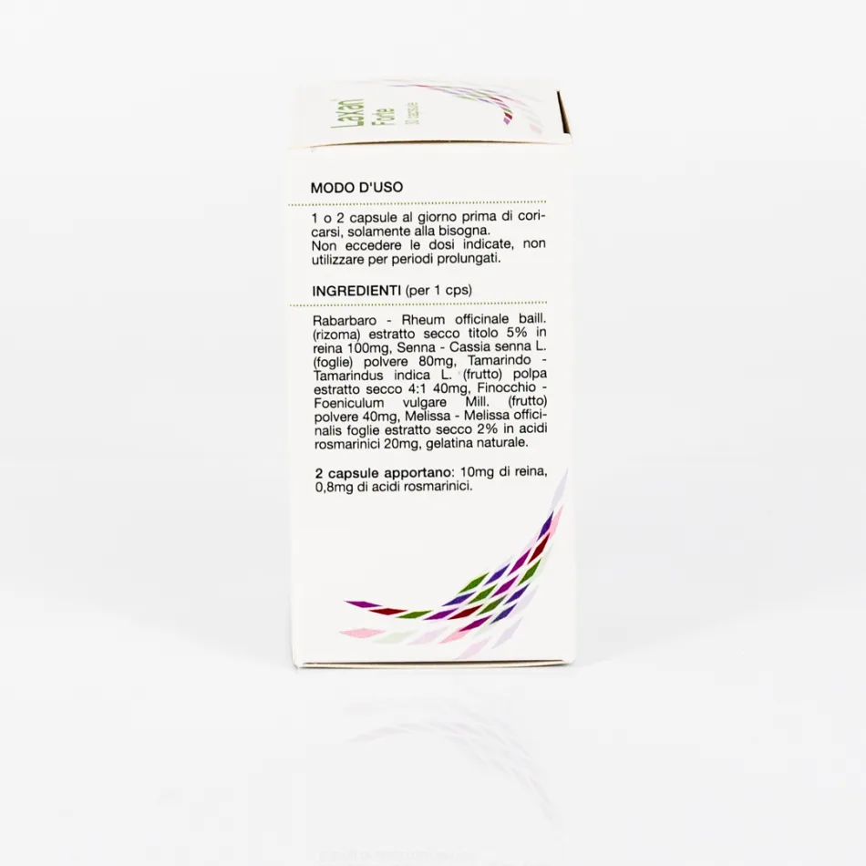 LAXAN FORTE® I (per 1 cps): Rabarbaro - Rheum officinale baill. (rizoma) estratto secco titolo 5% in reina 100mg, Senna - Cassia senna L. (foglie) polvere 80mg, Tamarindo - Tamarindus indica L. (frutto) polpa estratto secco 4:1 40mg, Finocchio - Foeniculum vulgare Mill.(frutto) polvere 40mg, Melissa - Melissa officinalis foglie estratto secco 2% in acidi rosmarinici 20mg, gelatina naturale.2 capsule apportano: 10mg di reina, 0,8mg di acidi rosmarinici