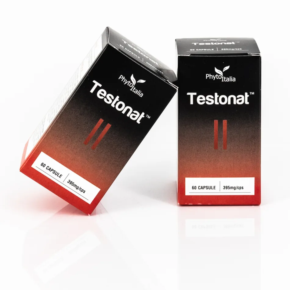 TESTONAT (per 1 cps): Tribulus - Tribulus terrestris L. (frutto) estratto secco titolato al 40% in saponine 100mg, Ortica - Urtica dioica L. (foglie) polvere 55mg, Maca - Lepidium meyenii Walp. (radice) polvere 50mg, Dioscorea - Dioscorea villosa L. (rizoma) estratto secco titolato al 10% in diosgenina 50mg, Esperidina da arancio dolce 50mg, Naringina 30mg, Camomilla - Matricaria Chamomilla L. (fiori) estratto secco titolato allo 0,2% in apigenina 30mg, Cavolo - Brassica oleracea L. (foglia) estratto titolato al 10% in broccorafanina 30mg, gelatina naturale.