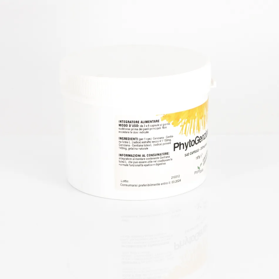 .PHYTOGENZIANA (per 1 caps): Genziana - Gentiana lutea L. (radice) estratto secco 4:1 150mg, Genziana - Gentiana lutea L. (radice) polvere 140mg, gelatina naturale.