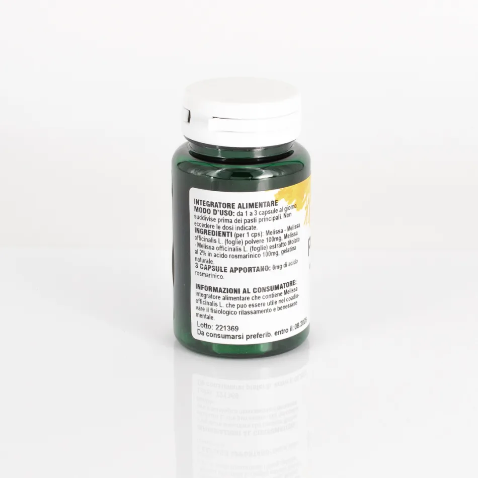 Integratore alimentare che contiene Melissa officinalis L. che può essere utile nel coadiuvare il fisiologico rilassamento e benessere mentale.