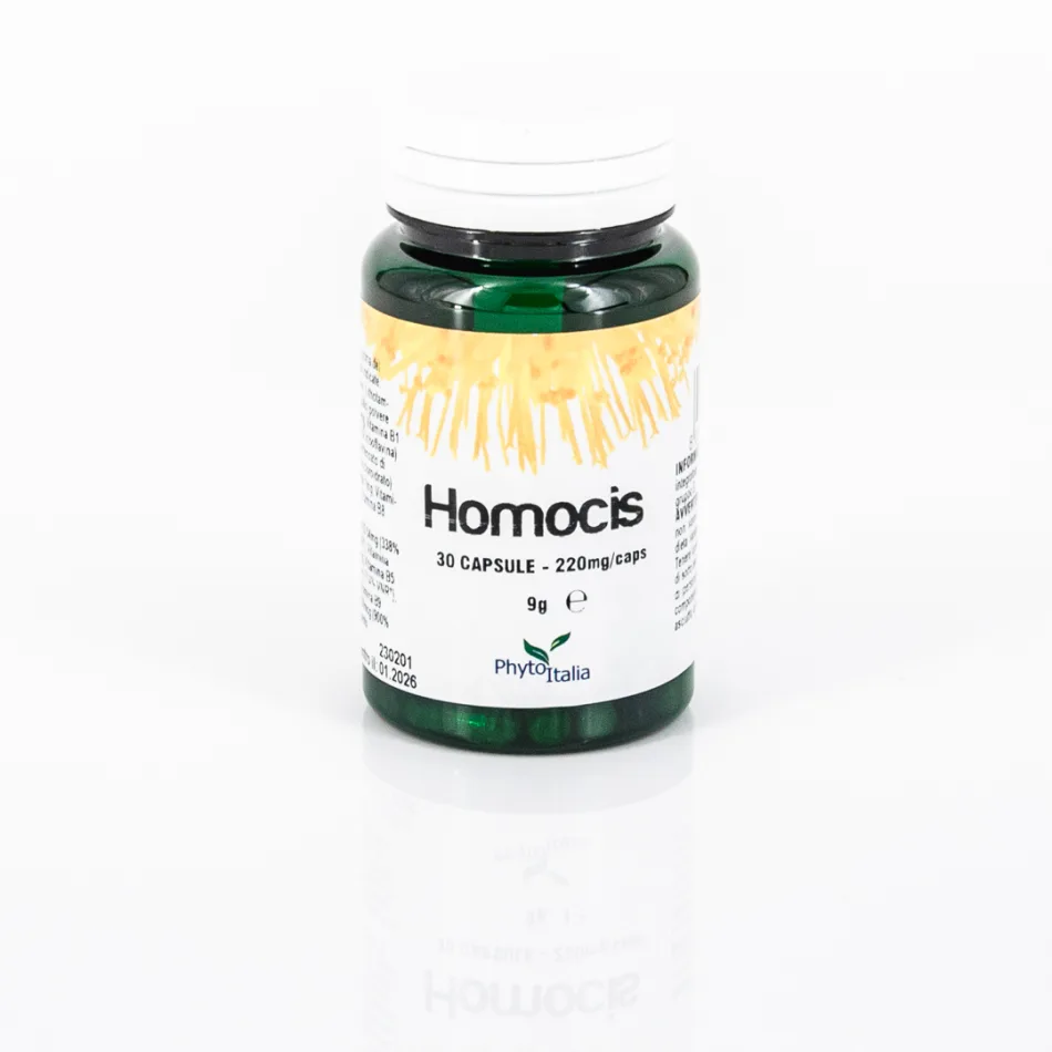 HOMOCIS (per 1 caps): Lithotame-Lithotamnium calcareum (Pallas) Areschoug (tallo) polvere 64 mg, Vitamina B3 (nicotinamide) 54 mg, Viatmina B1 (tiamina cloridrato) 25 mg, Vitamina B2 (riboflavina) 25 mg Betaina 20 mg, Vitamina B 5 (panteonato di calcio) 18 mg, Vitamina B6 ( piridossina cloirdato) 12 mg, Vitamina B9 ( metilfolato di calcio )0,47mg, Vitamina B12(cianocobalamina) 1 mg, viatmina B8 (biotina) 0,45 mg, gelatina naturale.