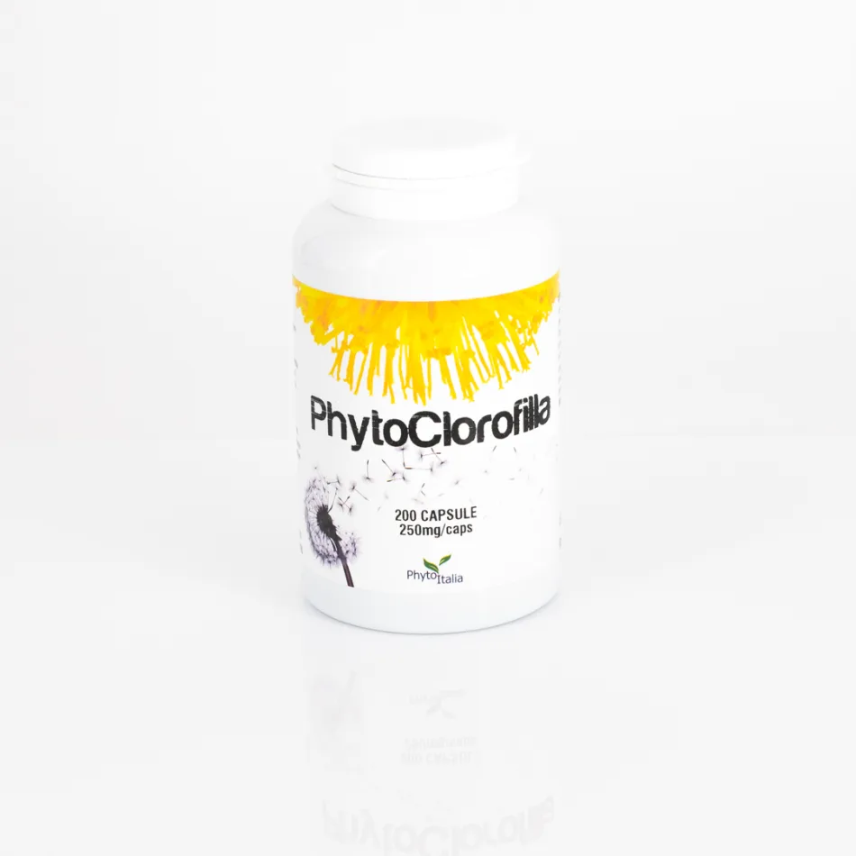 PHYTOCLOROFILLA (per 1 caps): Clorella - Chlorella pyrenoidosa Chick (tallo) polvere 225mg, Clorofilla ramata idrosolubile polvere 25mg, gelatina naturale.
