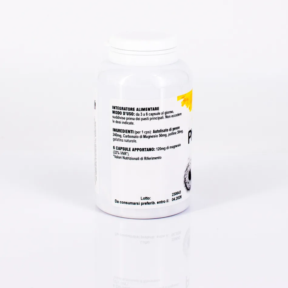 PHYTOMEMORY (per 1 caps): Autolisato di pesce 240mg, Carbonato di Magnesio 50mg, polline 30mg, gelatina naturale.