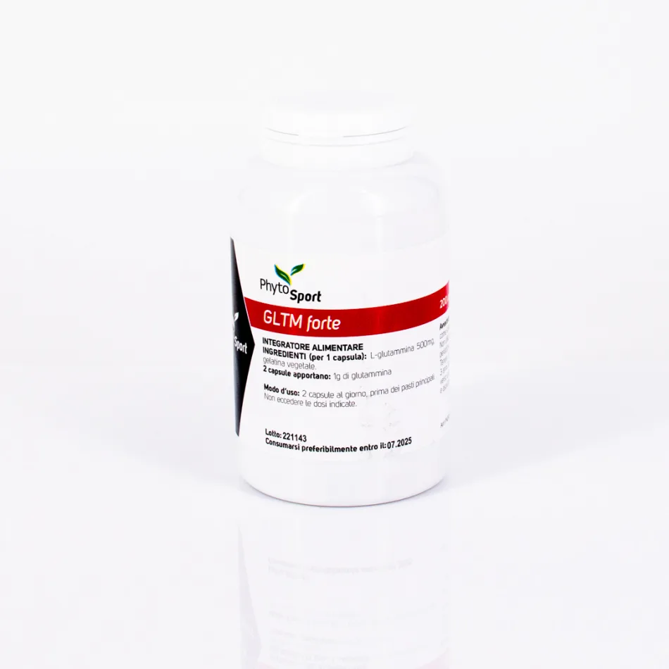GLTM Forte 200 caps (per 1 cps): L-glutammina 500mg, gelatina vegetale.GLTM
