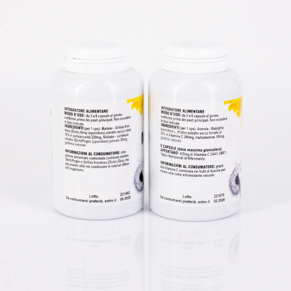 Peso capsula: 390 mg ( Maitakè plus) 250 mg (Acerola)