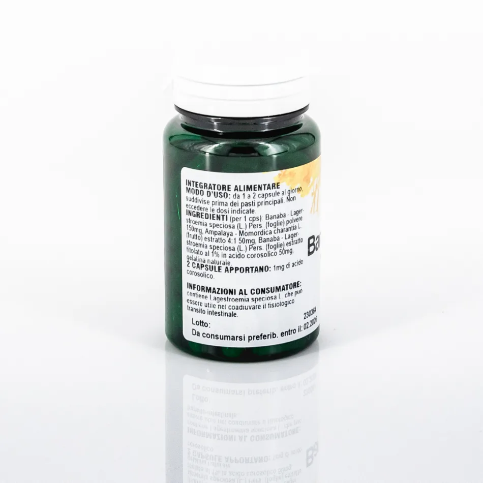 Integratore alimentare che contiene Lagestroemia speciosa Pers. (Banaba) che può essere utile nel coadiuvare il fisiologico transito intestinale. Può essere utile per regolare i livelli di glucosio, anche con l' alimentazione.