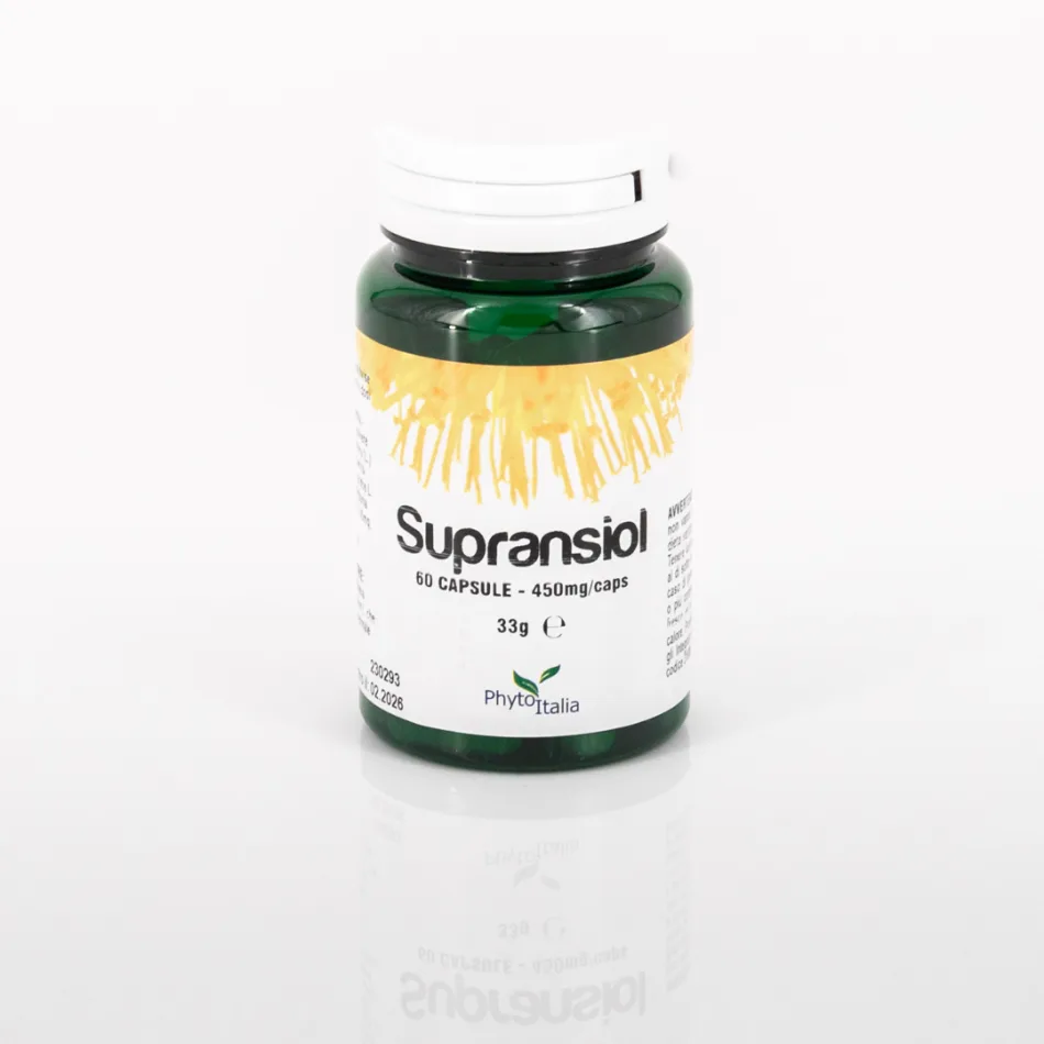 SUPRANSIOL (per 1 caps): Withania - Withania somnifera (L.) Dunal (radice) 225mg, Withania - Withania somnifera (L.) Dunal (radice) estratto titolato all' 1% in whitaniosidi 90mg, Ginestrino - Lotus corniculatos L. (fiori) polvere 90mg, Withania - Withania somnifera (L.) Dunal (radice) estratto 4:1 45mg, gelatina naturale.