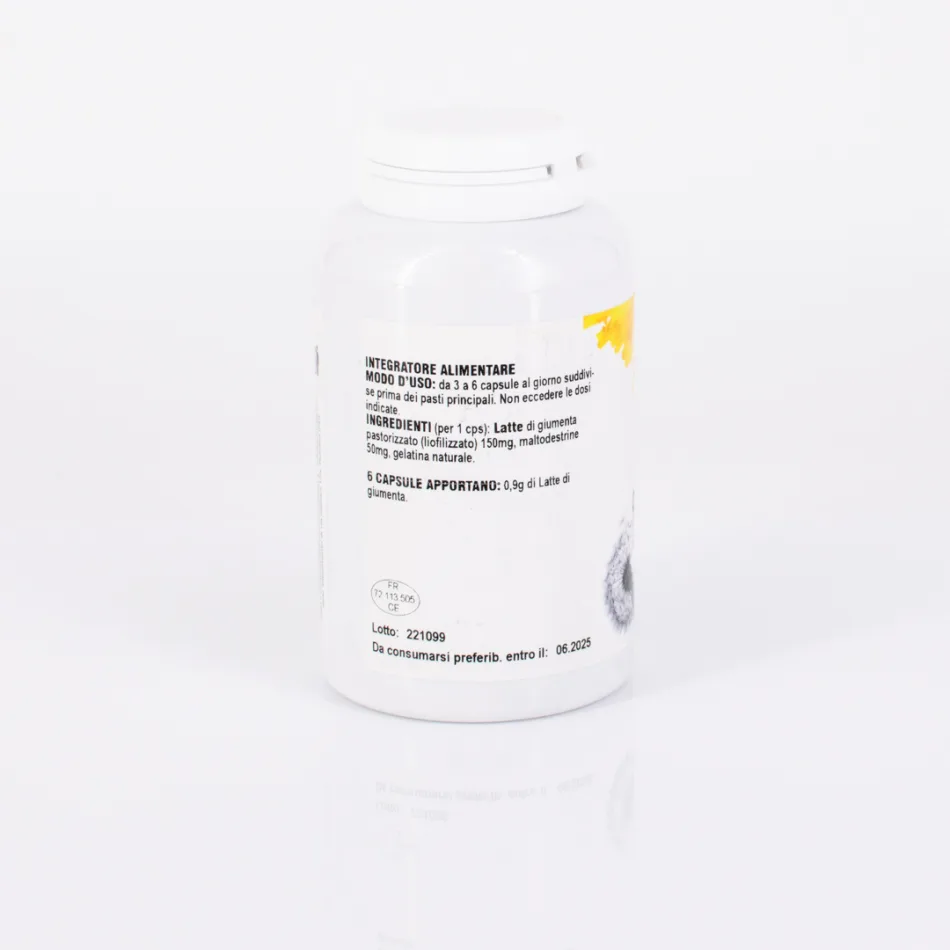 LATTE DI GIUMENTA (per 1 cps): Latte di giumenta pastorizzato (liofilizzato) 150 mg, maltodestrine 50 mg, gelatina naturale. 6 CAPSULE APPORTANO: 0,9 g di Latte di giumenta.