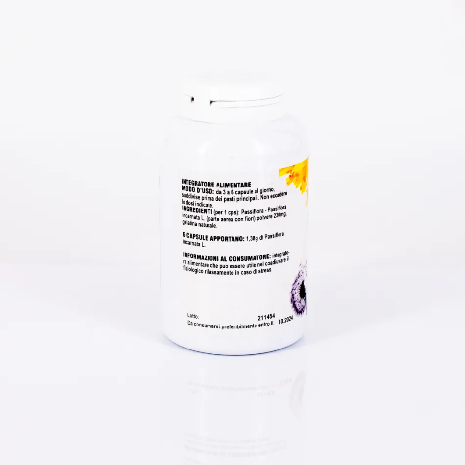 PASSIFLORA (per 1 cps): Passiflora - Passiflora incarnata L. (erba con fiori) polvere 230mg, gelatina naturale.