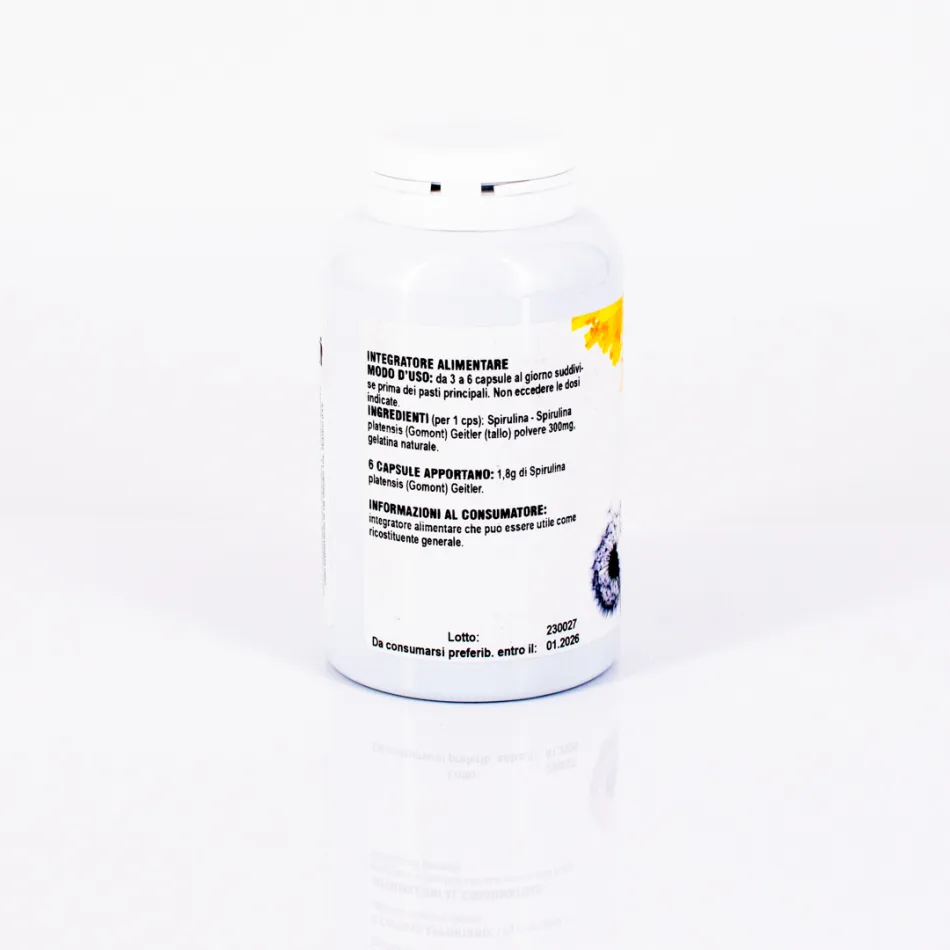 SPIRULINA (per 1 cps): Spirulina - Spirulina platensis Geitler (tallo) polvere 300 mg, gelatina naturale.